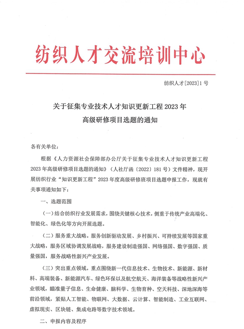 关于开展中国纺织行业专业技术人才知识更新工...